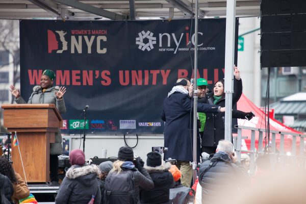 Hundreds of people attended the third annual Women’s March at Foley Square Park in New York City.